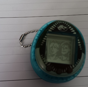 I kept the Jurassic World Rebirth Tamagotchi going, too. Right now, I'm in a feed and clean up pattern that'll probably go on for days, but Tamagotchi Nanos are cute in that you get "special visitors," which are usually tiny pixel scenes from the property they're licensed from. I saw a couple yesterday, but I was impressed by the little pixel Laura Dern, pictured below. If you hit any of the buttons, this pans out to show them looking at a brontosaurus, like in the first movie, and it's very charming! Tamagotchi Nanos have some surprisingly nice minimalist pixel art.